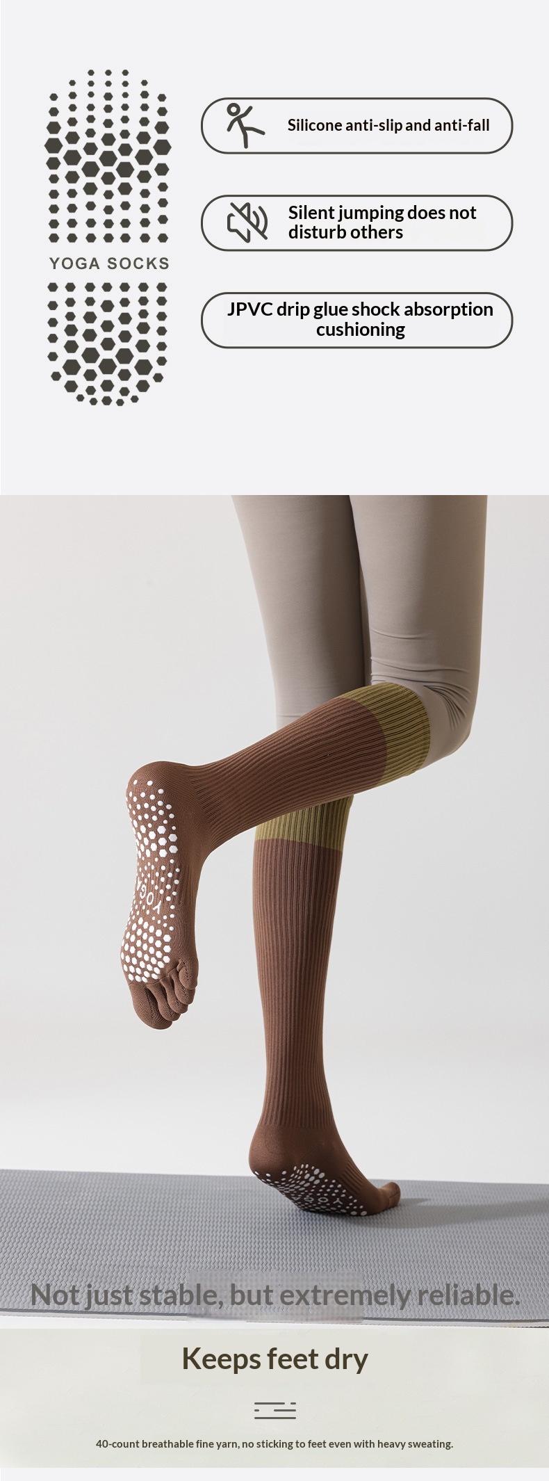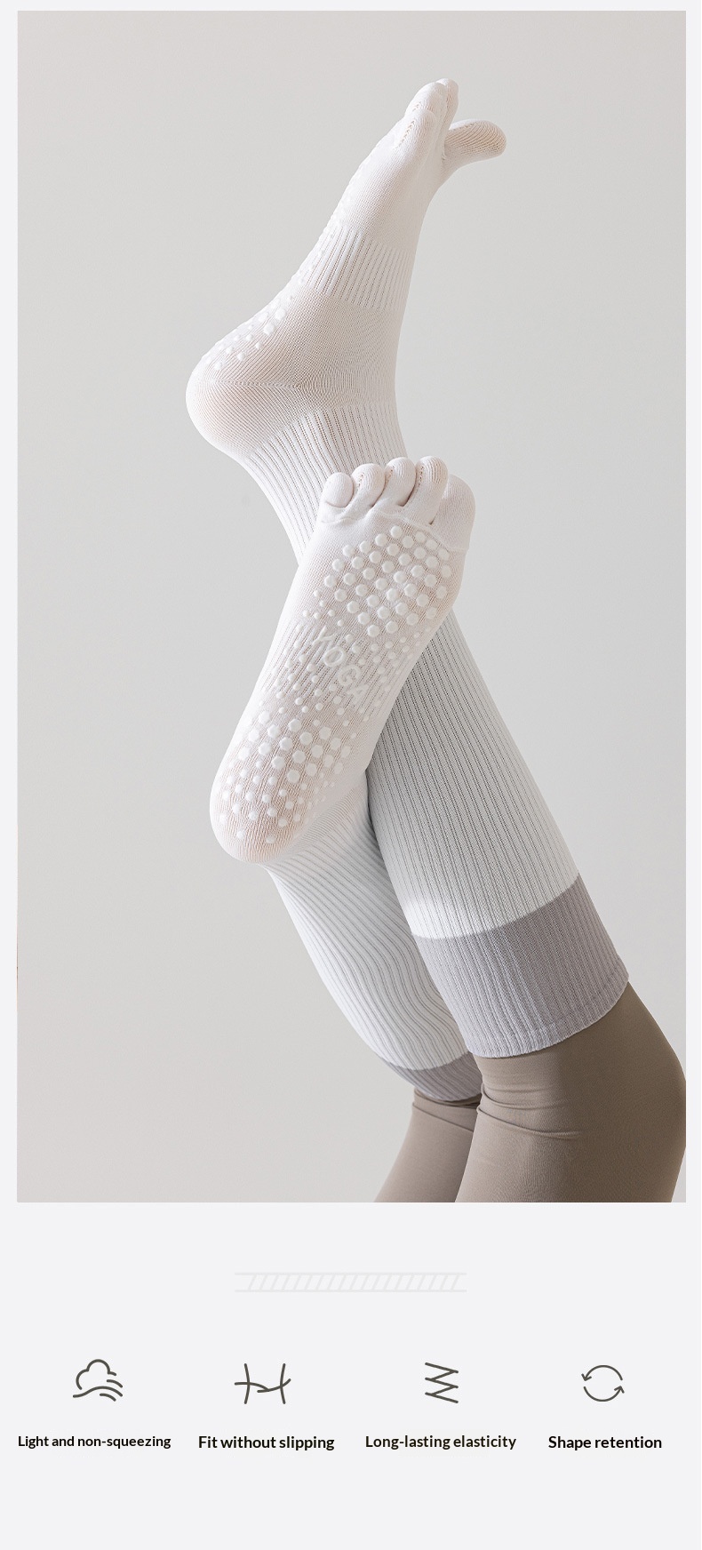 Descubre nuestros calcetines descalzo Diseñado específicamente para yoga y pilates: la sensación de ir descalzo, con mayor seguridad. Gracias a su suela antideslizante, mantienes la máxima estabilidad tanto en la esterilla como en el suelo, incluso en las posturas más exigentes.