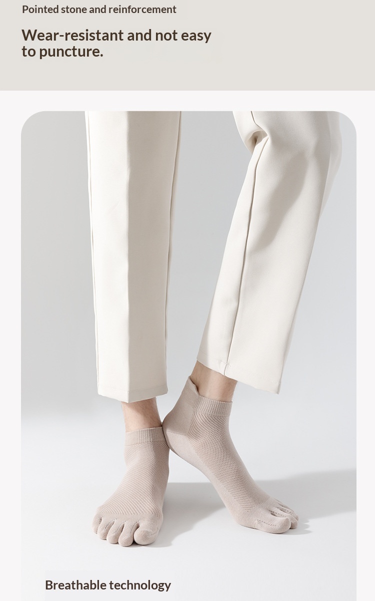 Chaussettes barefoot style japonais, légères et confortables au quotidien. En coton doux, elles absorbent la transpiration, limitent les odeurs et offrent une protection antibactérienne. Coupe basse discrète, résistante à l’usure, idéale pour un usage tous les jours.